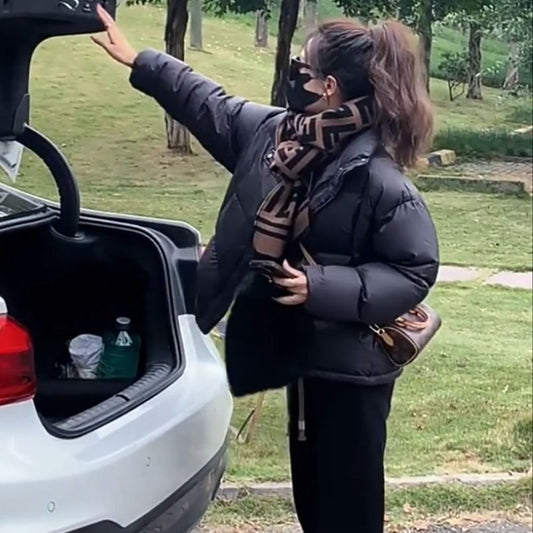 Puffer Jacket with Checkered Collar for Women - Caterina