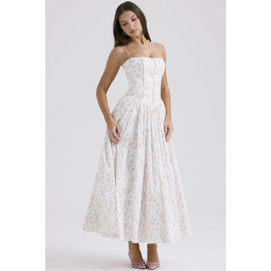 Floral Midi Dress with Spaghetti Straps for Women - Lina