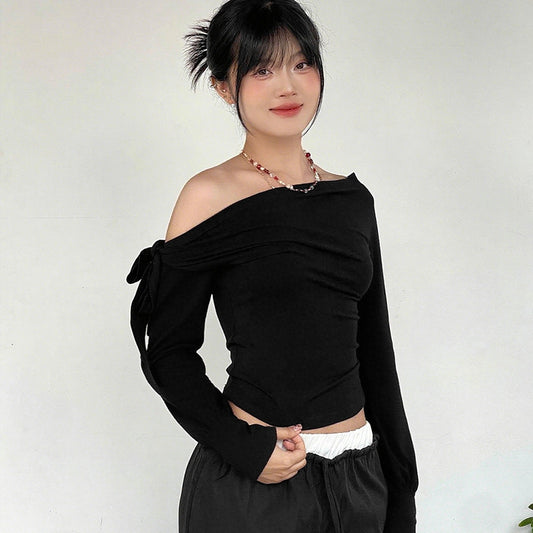 Off Shoulder Long Sleeve Top with Bow for Women - Viviana