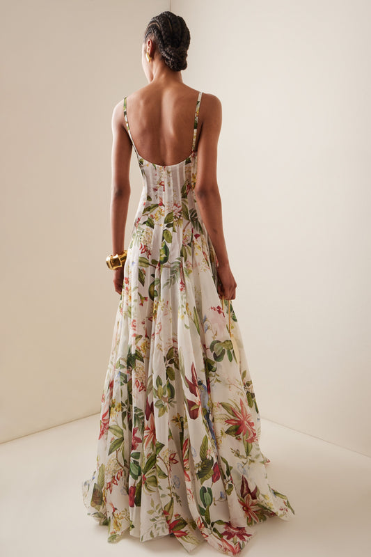 Floral White Maxi Dress with Spaghetti Straps for Women - Grazia