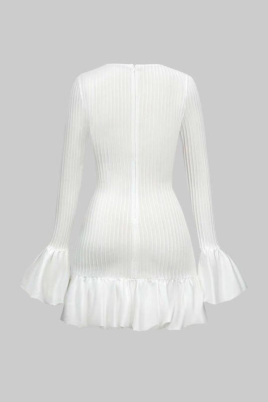 Vintage Solid Color Puff Bell Sleeve Mini Dress