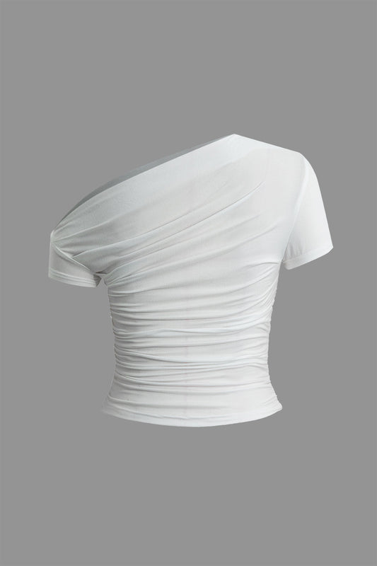 Solid Color Asymmetrical Ruched Crop Top & Tie Mini Skirt Set