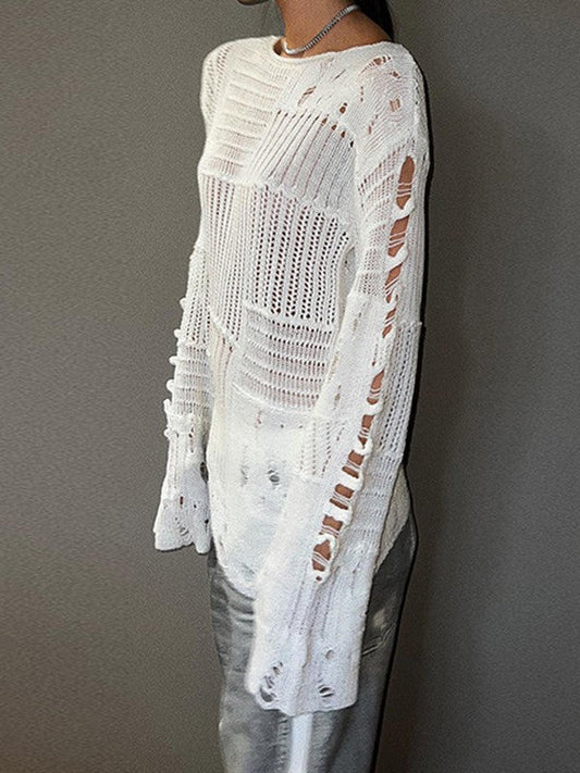 Hip Hop Cutout Perspective Long Sleeve Knit Top