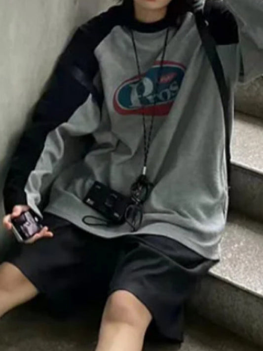 Gray Vintage Letter Print Off Shoulder Sweatshirt