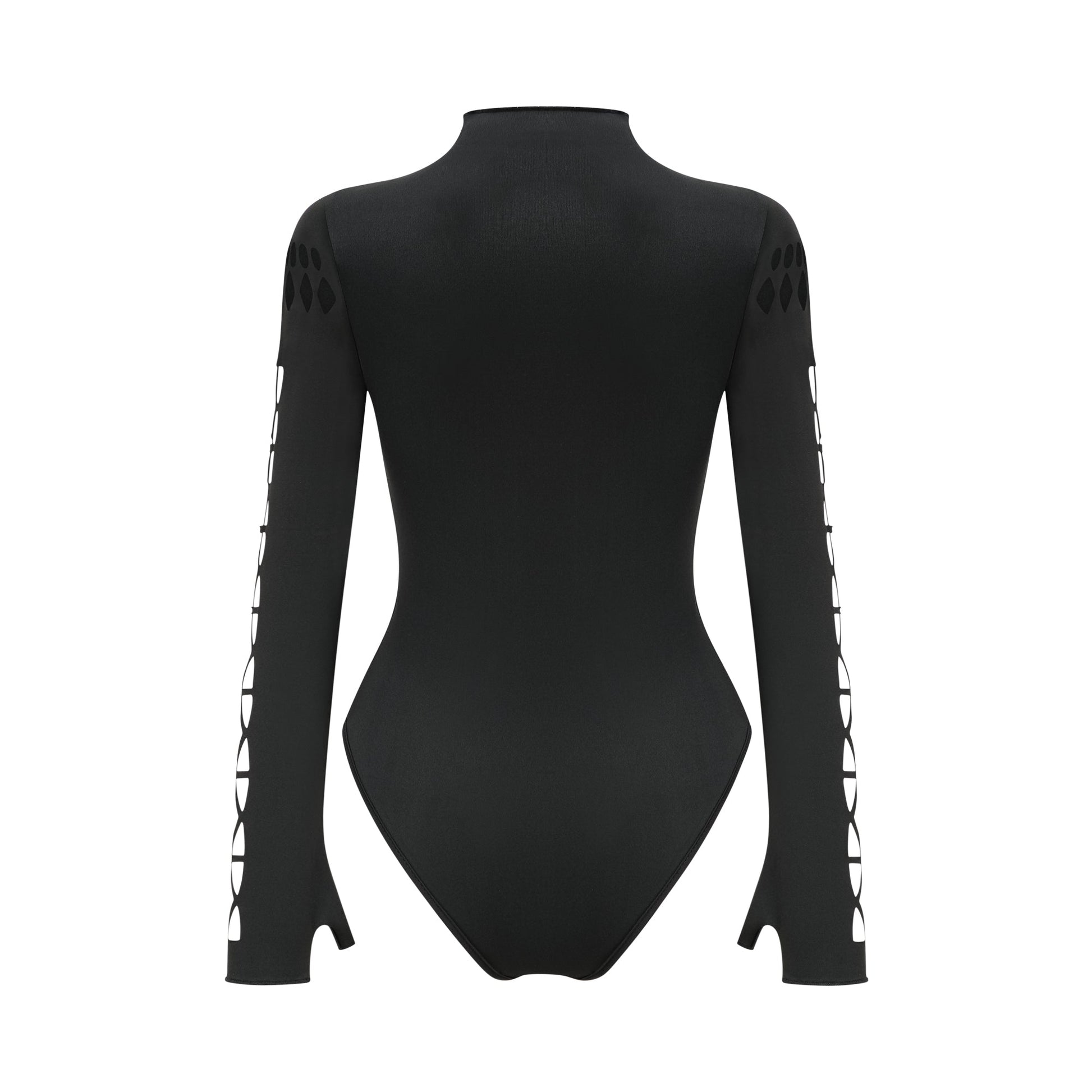 Black Cut-Out Bodysuit with Mesh Detail for Women - Rebecca