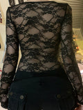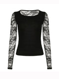 Black Y2k Lace Stitching Long Sleeve Tee