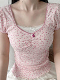 Floral Lace Patchwork Ruffle Short Sleeve Top