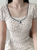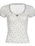 Comfortable Short Sleeves: Designed with short sleeves, this top provides a breezy, comfortable fit that's perfect for warm weather. The sleeves are finished with delicate ruffles, adding to the top's overall charm and making it a versatile piece for layering or wearing on its own.