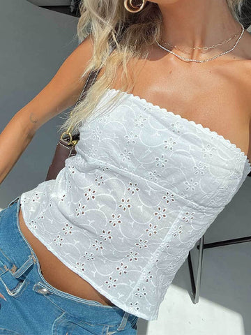 Black and white color options: The black and white color options of this tube top make it easy to pair with other items in your wardrobe and add versatility to your outfit choices. Additionally, the embroidered hollow design gives it a cute and vintage-inspired look .