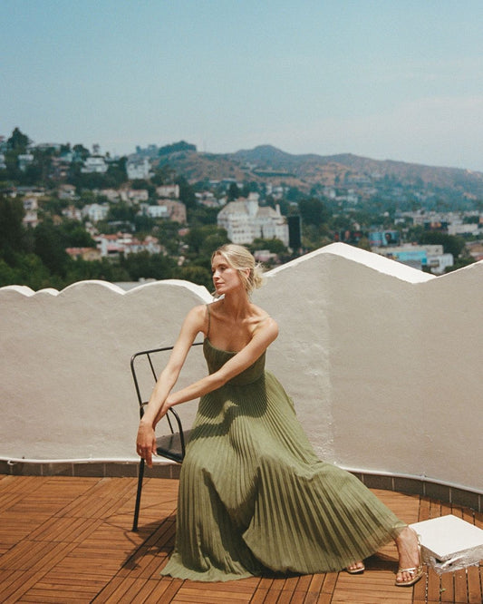 Sage Green Maxi Dress with Pleated Skirt for Women - Gisella