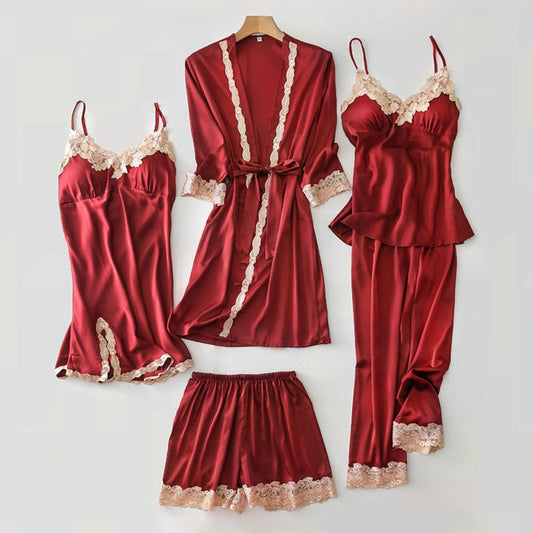 Satin Sleepwear Set with Lace Trim for Women - Marusca