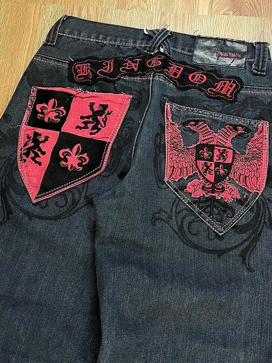 Black American Retro High Street Wide Legs Boyfriend Jeans