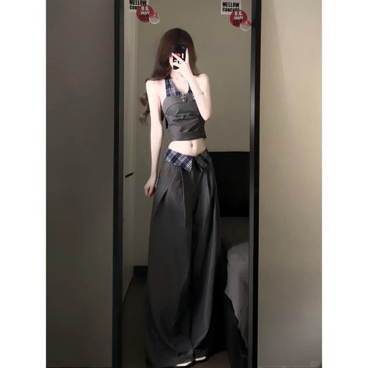 Black Halter Crop Top and Wide Leg Pants Set for Women - Benedetta