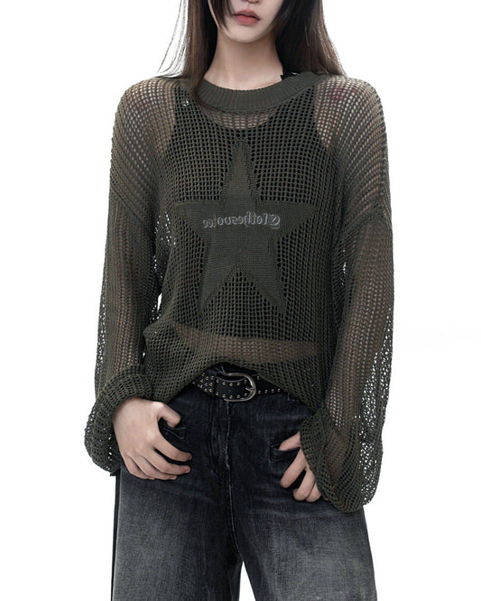 Y2K Vintage Crochet Cropped Flared Sleeve Knit Sweater