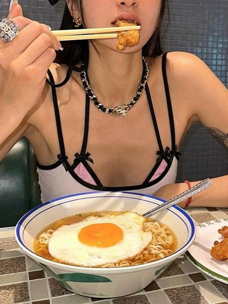 Y2k Lace Up Navel Cutout Knit Crop Top