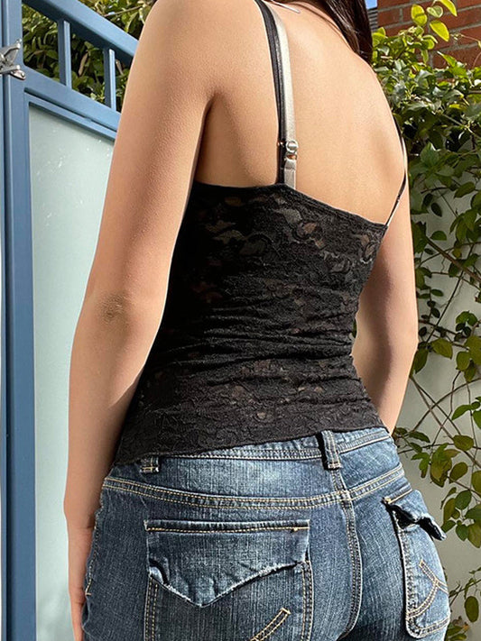 Black Vintage Lace Camisole with V Neck and Lace Bow