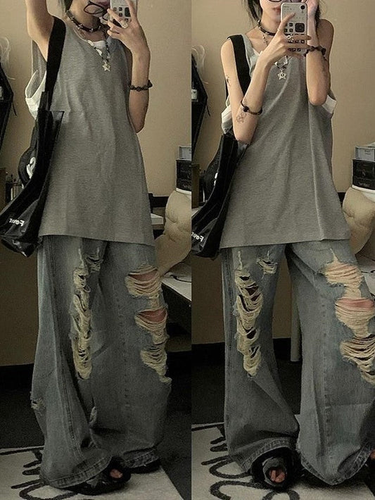 Grey Vintage American Style Sleeveless Tank Top
