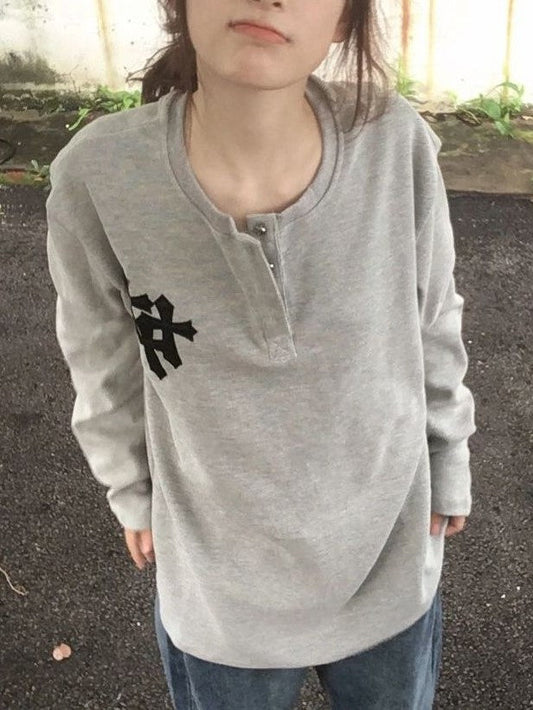 Grey Retro Print Oversized Half Sleeve Short Sleeve Top