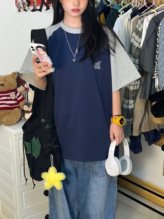 Retro Oversized Raglan Short Sleeve Top