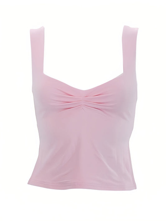 Multi-Color Pleated Sleeveless Crop Tank Top with Slit