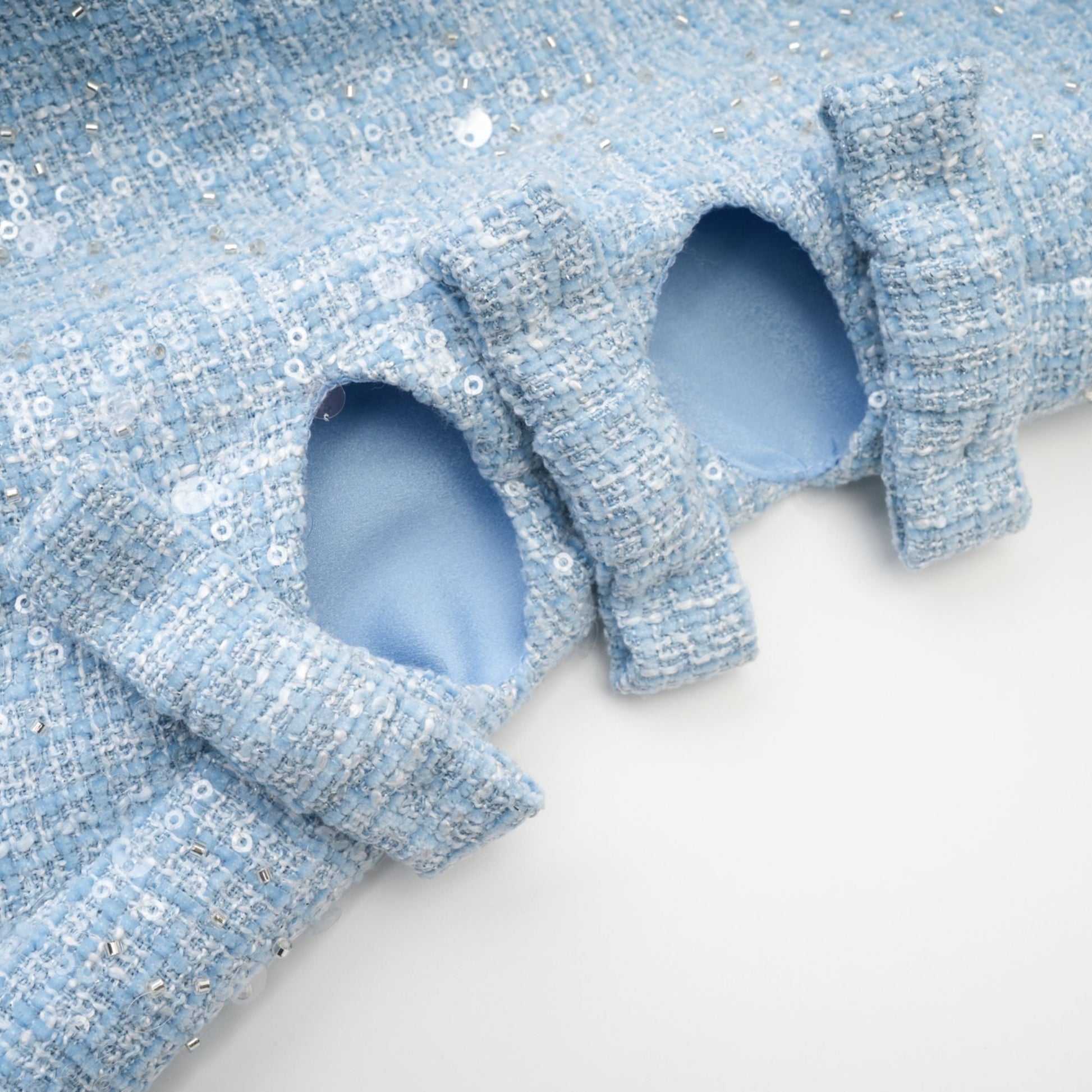 Baby Blue Tweed Mini Dress with Cut-Outs for Women - Nadia
