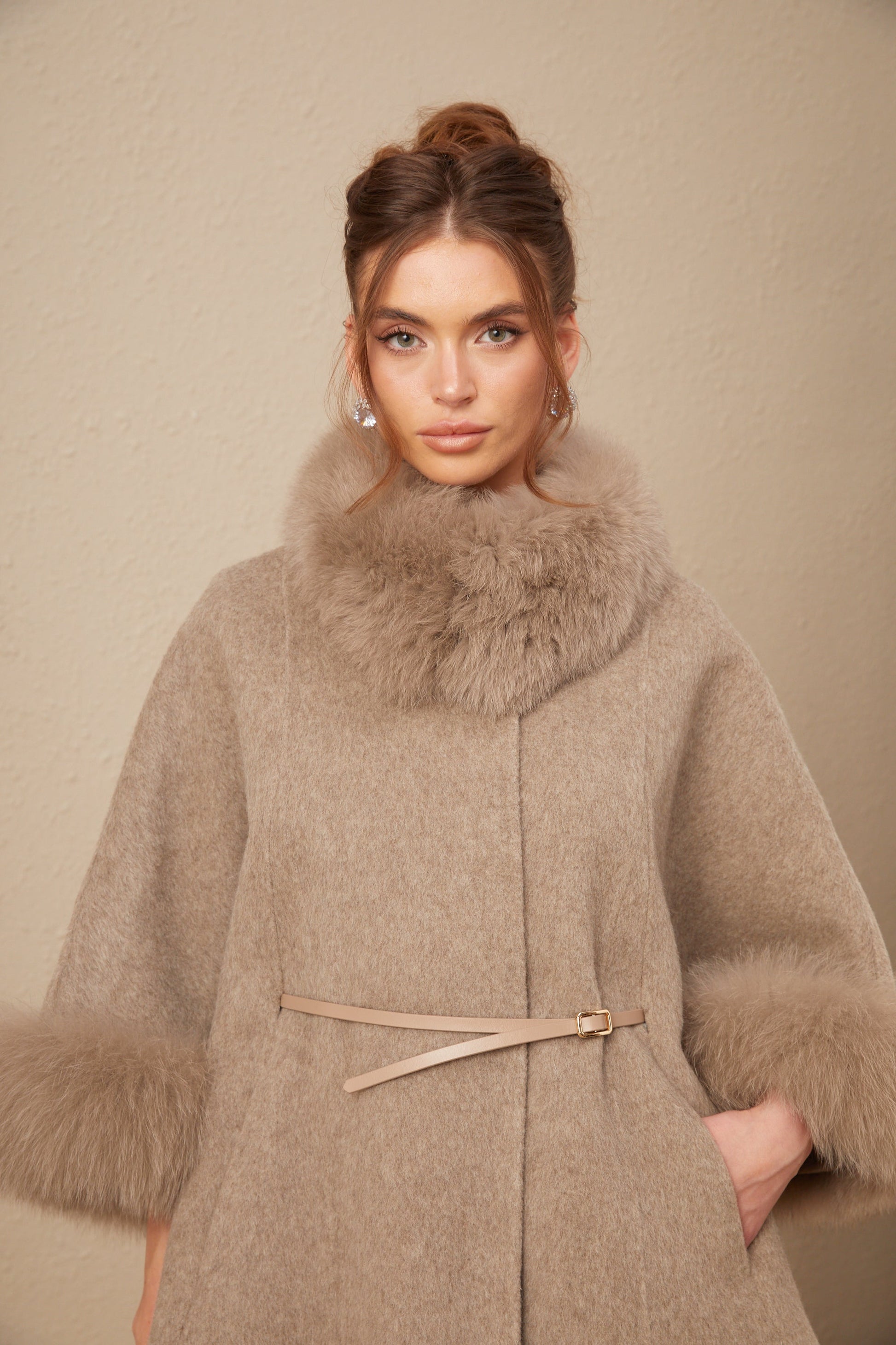 Beige Wool Coat with Faux Fur Collar for Women - Allegra