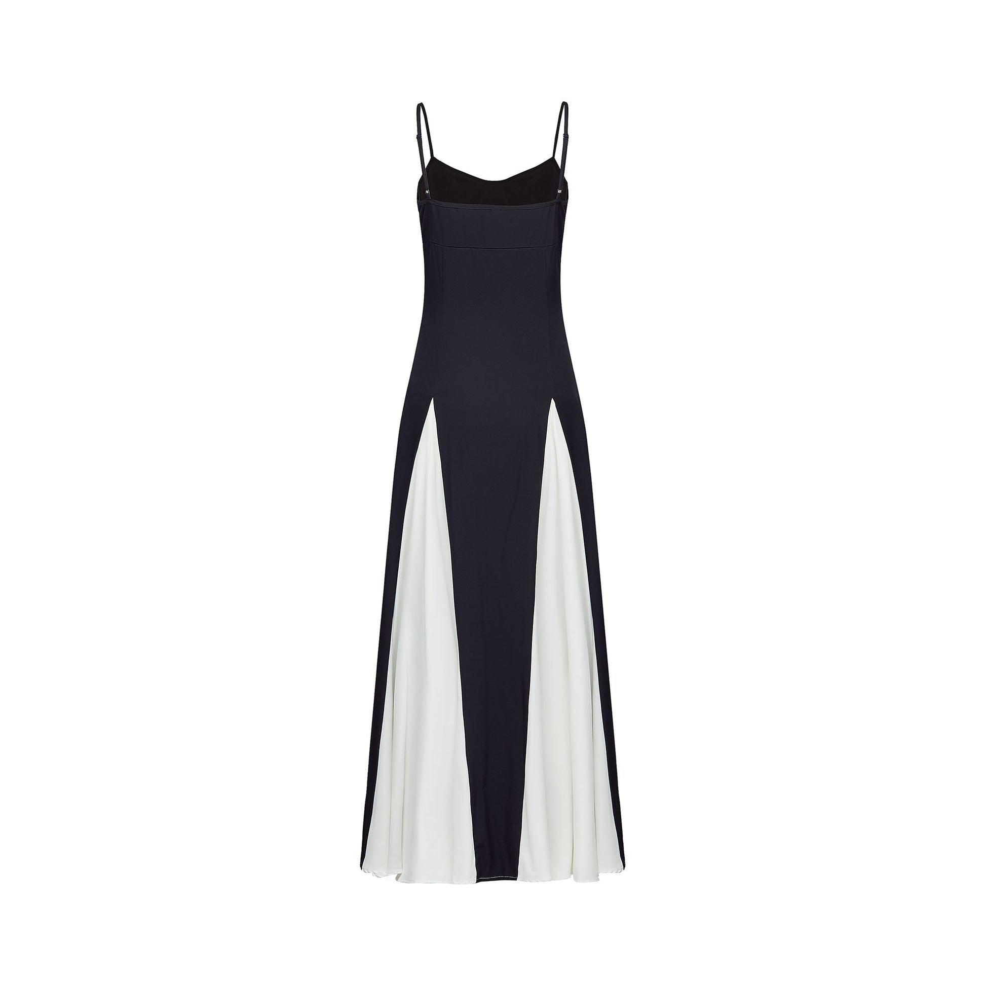 This black and white maxi dress offers a striking contrast in color and design, perfect for making a bold statement. Featuring a fully pleated structure and adjustable shoulder straps, this dress combines elegance with effortless movement.