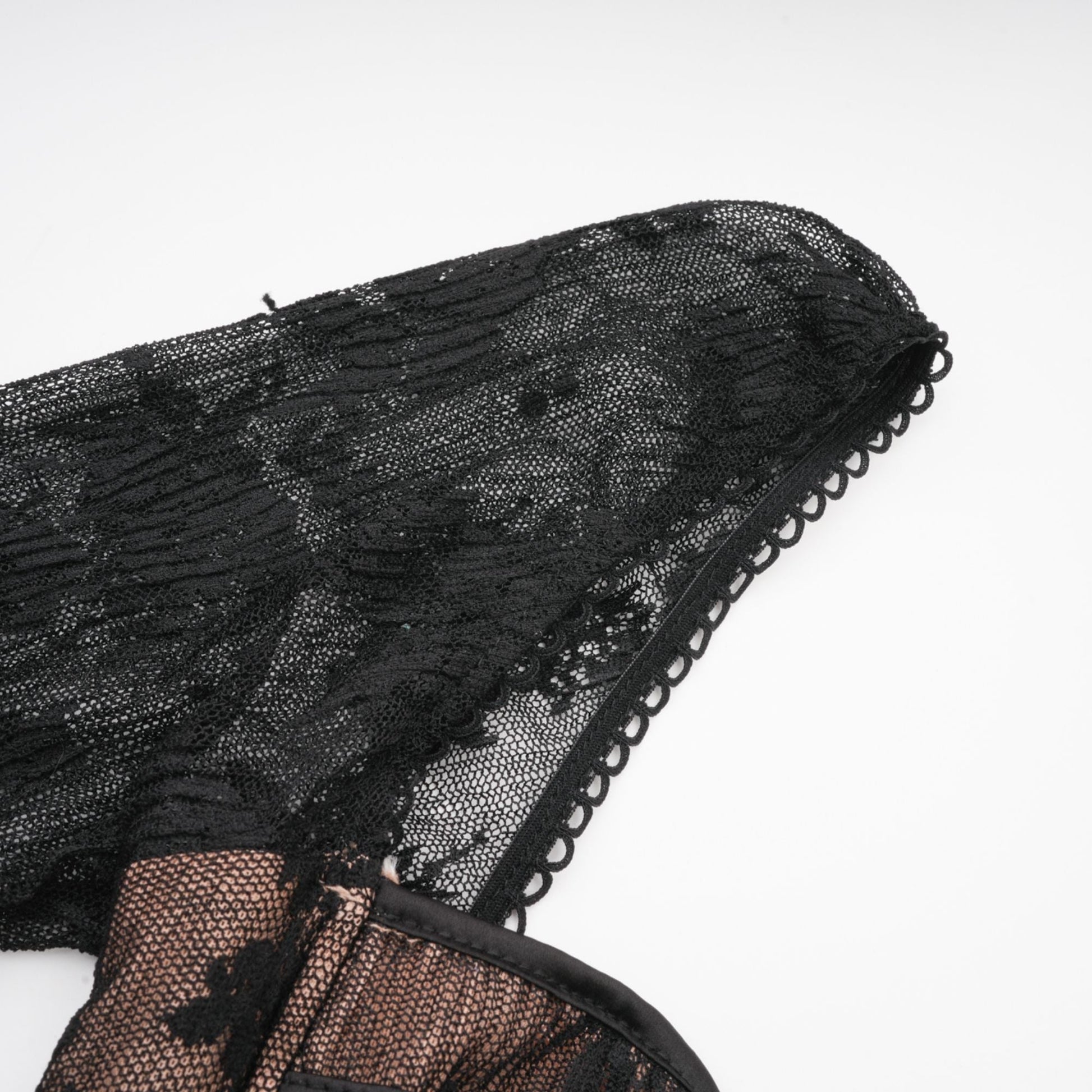 Bustier-style bodice with pierced lace design for a sculpted and breathable fit