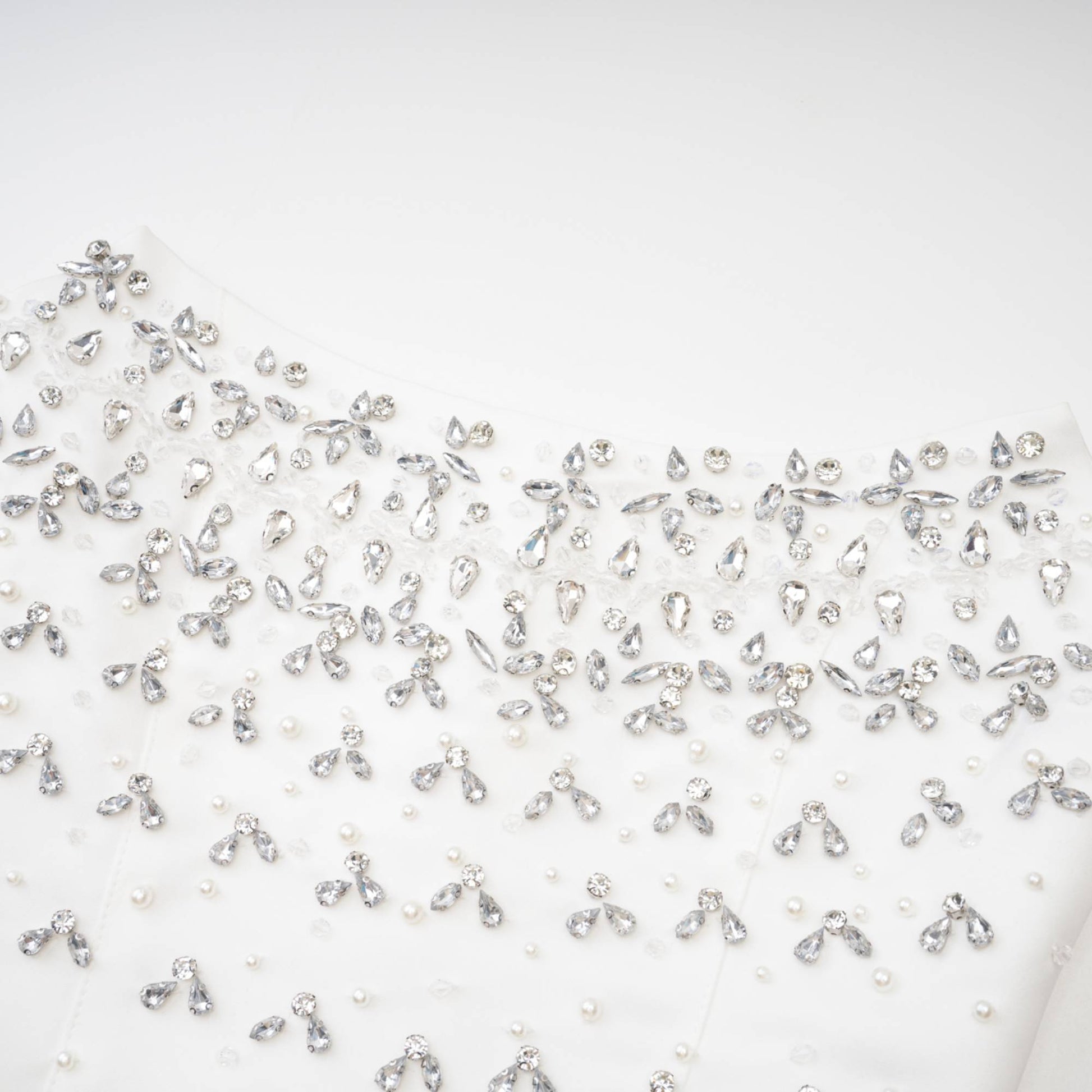 Fully Embellished with Pearls and Crystals: Delicate handmade detailing throughout the dress ensures a unique and luxurious finish.