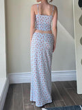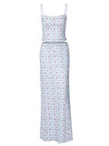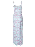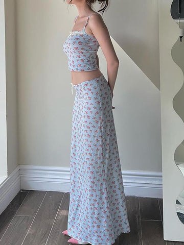 Blue Sweet Floral Decorative Lace Two Piece Set