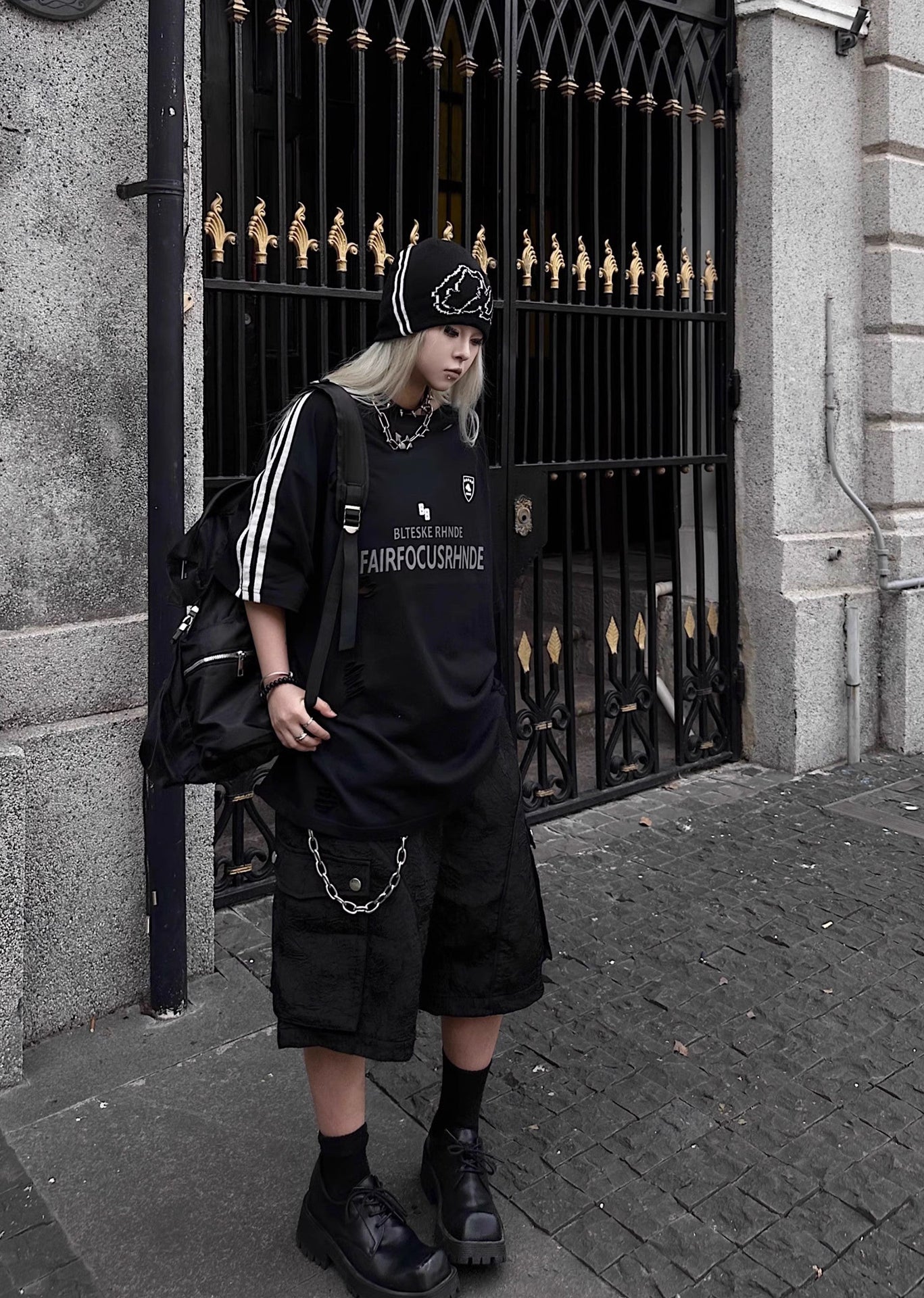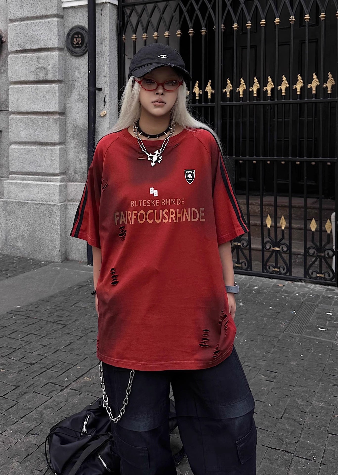 Hip Hop Washed Design Grunge Short Sleeve Top