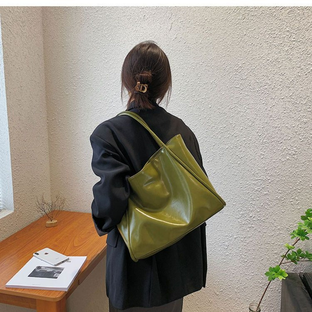This large faux leather shoulder bag combines functionality with timeless style. Designed in a rich brown tone, it offers plenty of space and durability, making it an ideal everyday accessory.