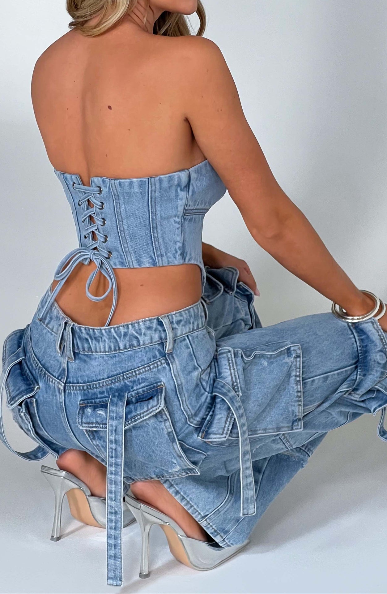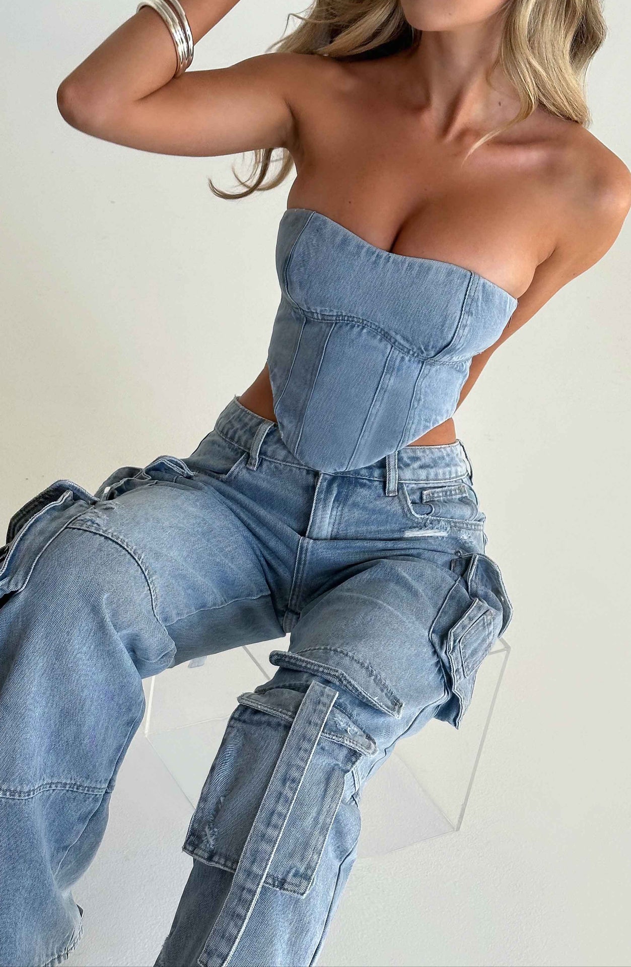 Functional & Fashion-Forward – Featuring multiple pockets and a high-waisted design, these pants blend utility with trendsetting appeal. Pair with the Yasie corset for a double-denim look that screams retro chic.