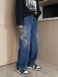 Men's Blue Dragon Embroidered Straight Leg Jeans