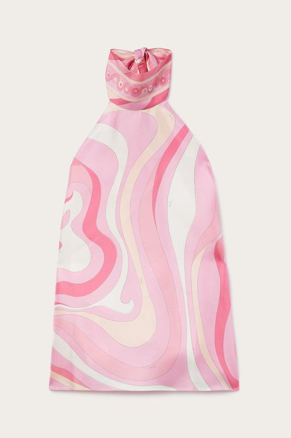 Halter neck sleeveless top pairs perfectly with the scarf print midi skirt