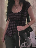Vintage U Neck Drawstring Short Sleeve Tee with Stripes