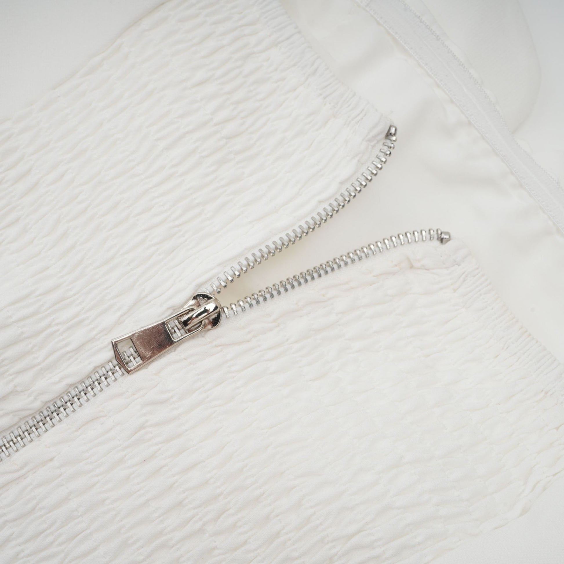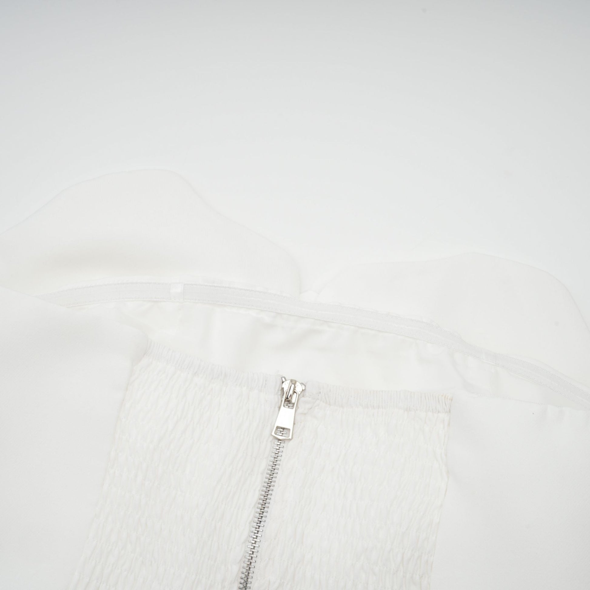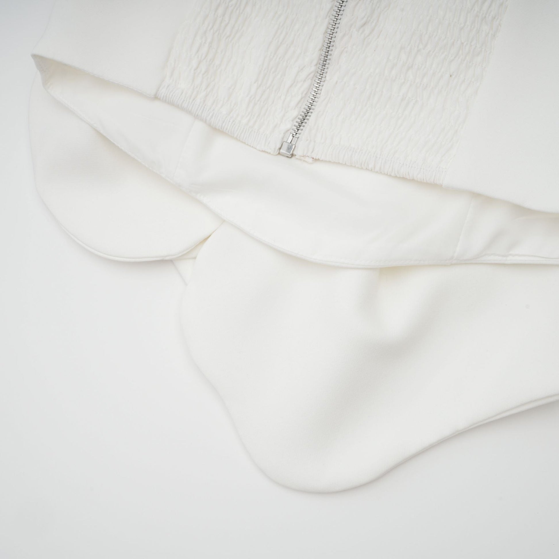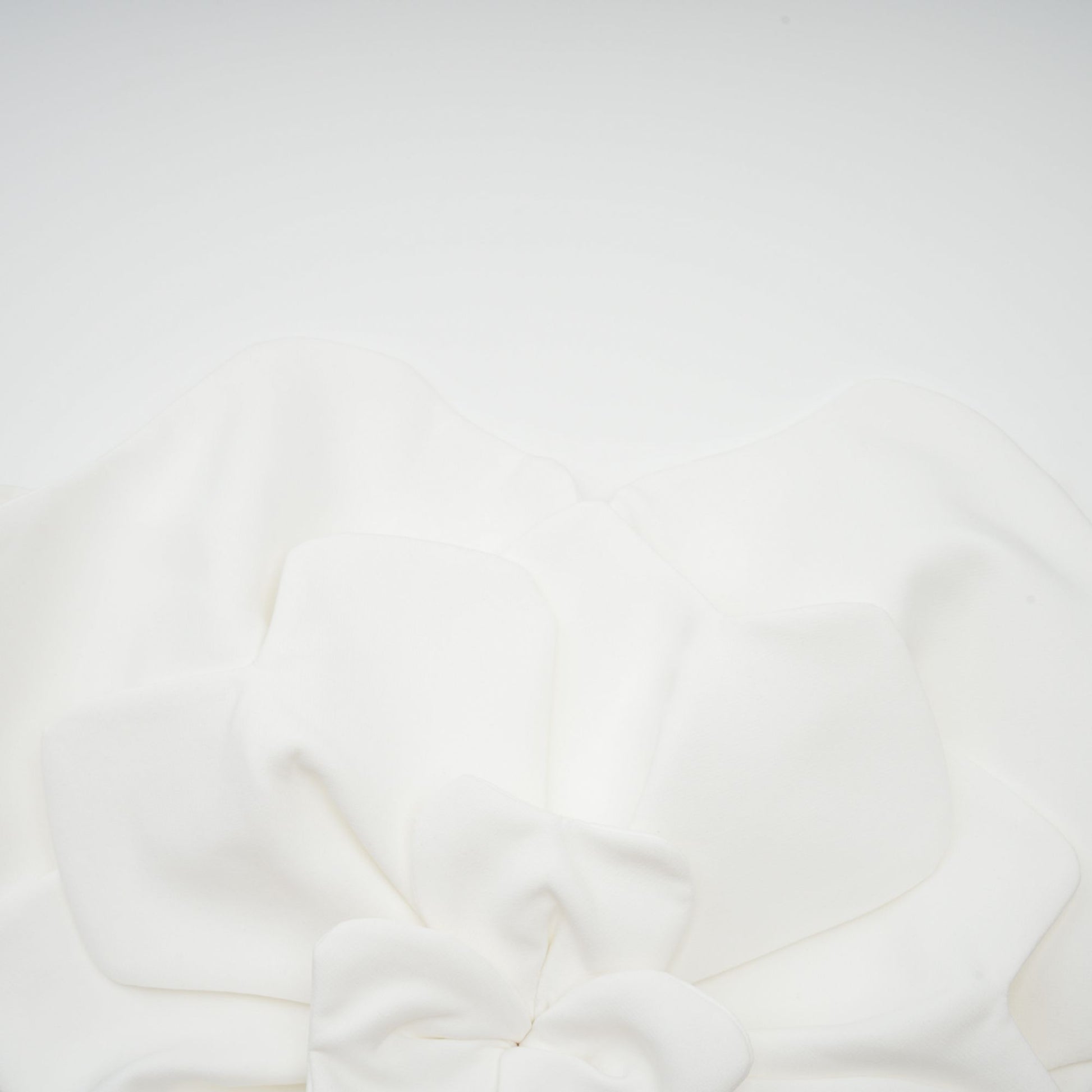 Make a bold statement with this white off-shoulder crop top, designed to turn heads with its sculptural floral design and flattering silhouette. Perfect for expressing individuality, this standout piece blends artistry and structure in one modern essential.