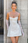 Whimsical Floral Fantasy – The Dalary Mini Dress in ivory is a dreamy remake of the beloved maxi, crafted from premium stretch mesh with scattered 3D flower appliqués for ethereal charm. Perfect for garden parties, bridal events, or romantic dates, this dress is soft girl perfection brought to life.