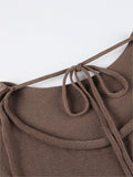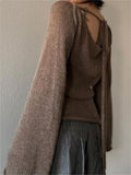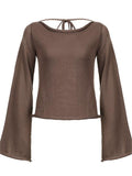 Backless Lace Up Knit Top with Flare Sleeves