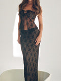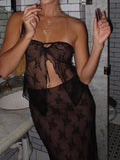 Black Vintage Lace Tube Perspective Top&Midi Dress Two Piece