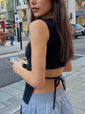 Black Vintage Tie Up Back Tank Top