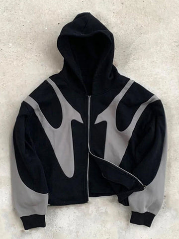 Black Y2k Men's Contrast Color Oversized Long Sleeve Hoodie