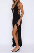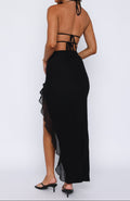 Make a stunning entrance in this show-stopping maxi dress, designed to turn heads with its bold details and elegant silhouette. Perfect for special occasions, this dress combines sophistication with a daring edge for an unforgettable look.