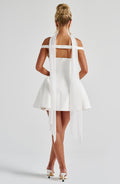 Versatile and Eye-Catching: Whether you’re dressing up for a formal event or a night out, this ivory mini dress is a head-turner. Its voluminous skirt and elegant neckline make it a standout piece for any wardrobe.