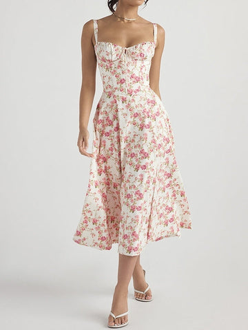 French Ditsy Floral Print Breasted Slim Midi Dress