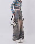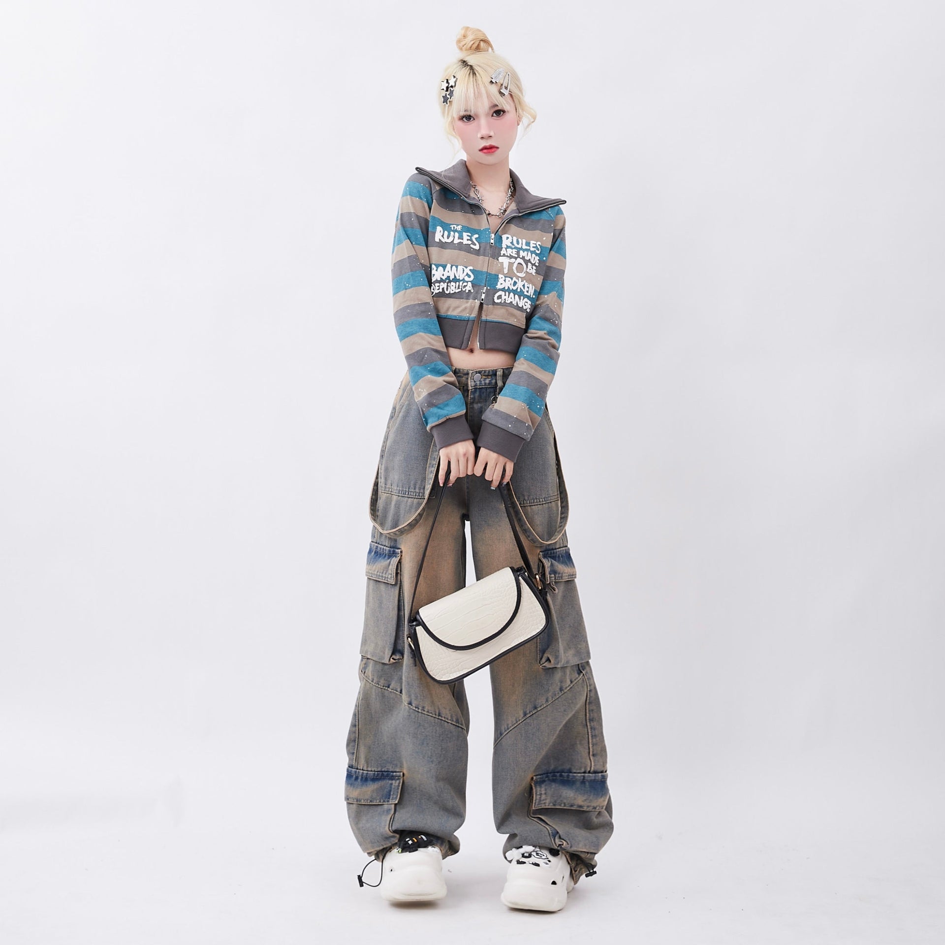 Gray Mud Like Washed Suspender Design Denim Jeans