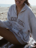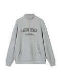 Grey Vintage Half Zip Knit Sweatshirt with Letter Embroidery