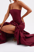 Dreamy and Romantic Silhouette: The Angelina Maxi Dress in burgundy is crafted from a premium non-stretch cotton blend fabric that hugs your body, creating a stunning, figure-flattering silhouette. Perfect for embracing your soft, feminine side.