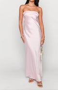 Step into effortless elegance with this light pink strapless maxi dress, designed to make you glow at any formal event or prom. The delicate baby pink shade and flattering bias cut create a soft, feminine silhouette that’s perfect for spring and summer occasions.