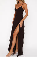 Embrace golden hour glamour in the Summer Solstice Maxi Dress—a chocolate-hued masterpiece blending sultry sophistication with breezy summer ease. This showstopping silhouette turns every sunset into your personal runway.